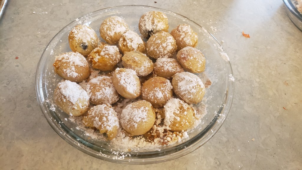The following morning, I am making my husband his favorite childhood breakfast food for the first time ever. I had never tried them, much less made them, but I bought a special pan for my husbands birthday, and I was a day late making the actual treat. I am in the middle of doing my first batch of aebleskivers, basically a danish pancake in the form of a ball. It isn’t going so well at first, but I don’t back down from a challenge without first giving it all I’ve got. Now onto the second batch, things are starting to make sense.